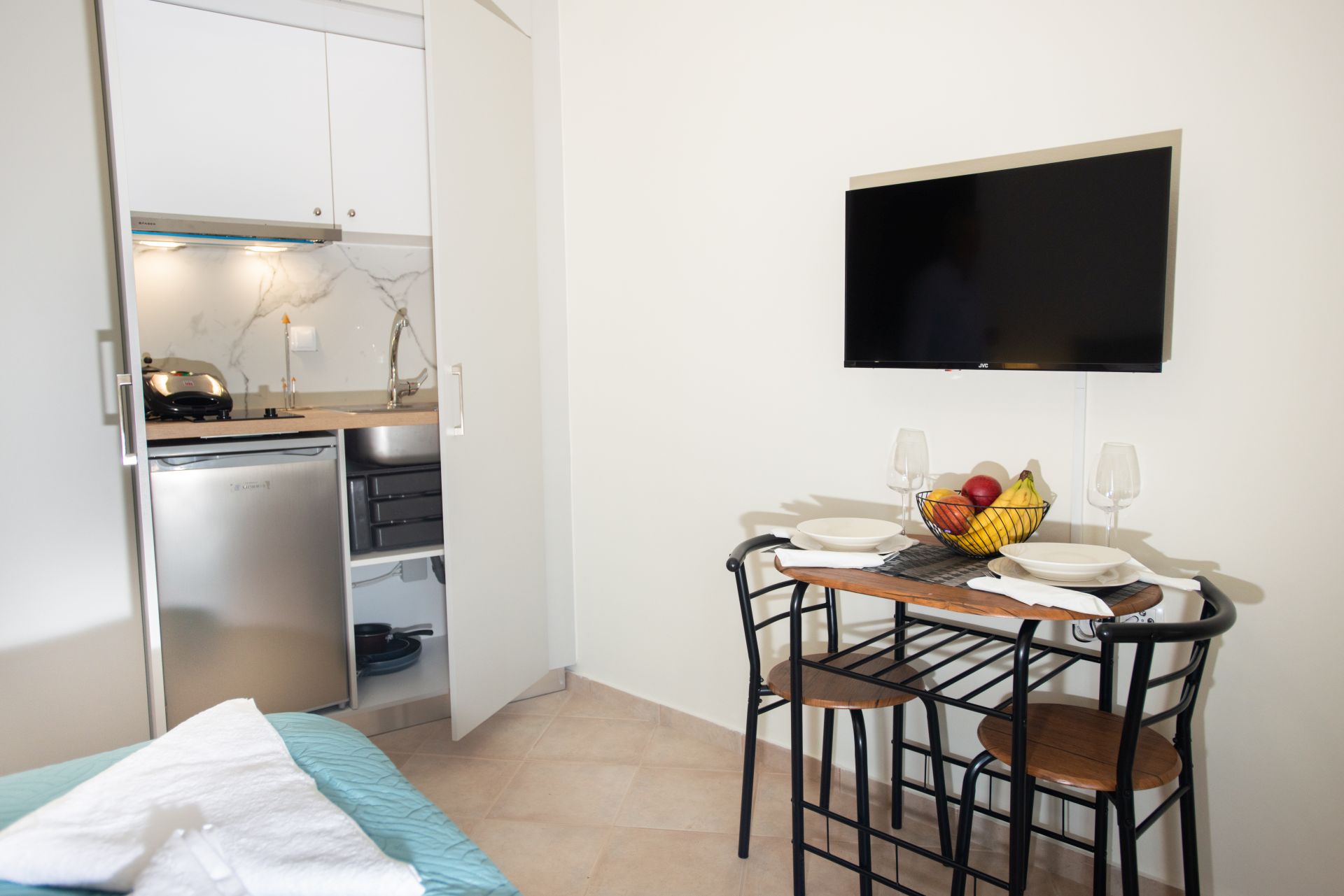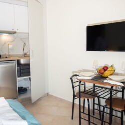Suite Akti is a cozy, thoughtfully designed apartment located on the backside of the beachfront building, ideal for two guests seeking a peaceful stay just steps from the sea.