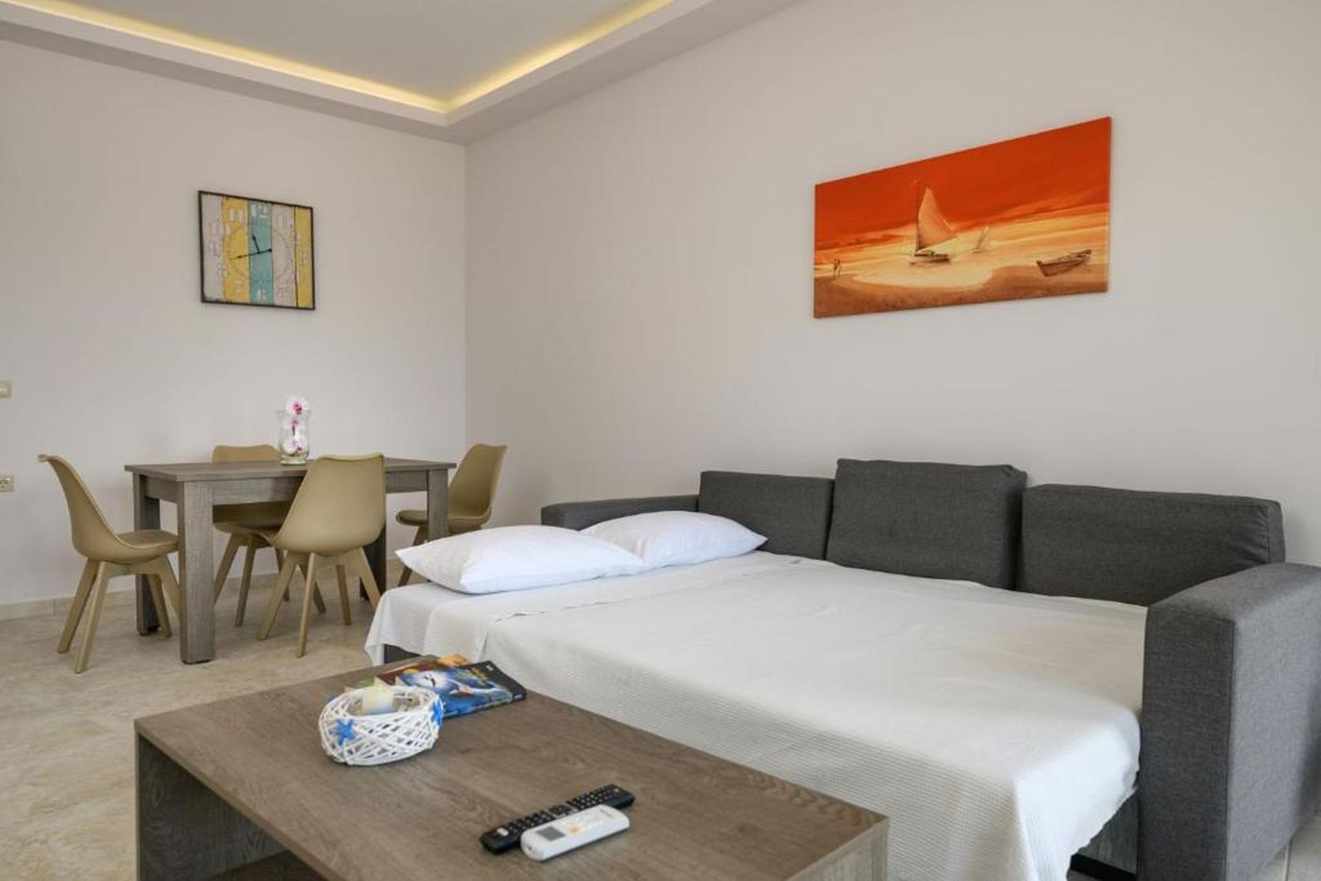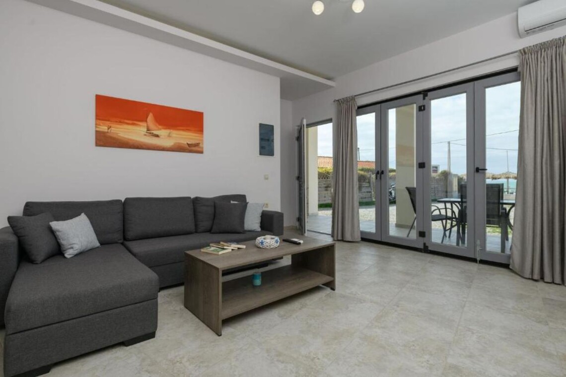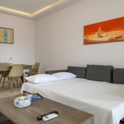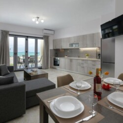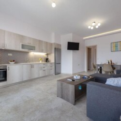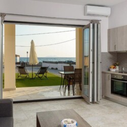 You enter the flat from its own private entrance and will be delighted with the light environment from the living area. The large canape is the ideal place to relax and savor the wonderful view. This couch can be converted to a comfortable king size sofa bed. The folding balcony door fills the whole width of the flat, providing sea views everywhere from the open plan kitchen and living area.