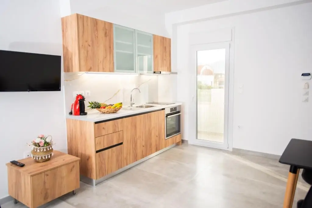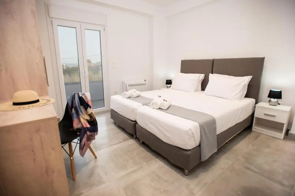 Feel right at home in our charming, contemporary apartment just a short stroll away from the beach. Spread across 60 square meters on the first floor, our apartment boasts a bright and airy living room furnished with a cozy seating area, smart TV, and a fully equipped kitchen with a dining space. The sofa easily transforms into a single bed for added convenience. Both bedrooms feature incredibly comfortable twin beds for a restful night’s sleep. The bathroom, positioned between the bedrooms, includes a shower and toilet for your comfort. You’ll also have access to a washing machine and dryer for convenience. To ensure a peaceful night’s rest, all windows come with blackout shutters, and each room is equipped with air conditioning. Step outside onto your private balcony overlooking the picturesque mountains, complete with outdoor furniture for your relaxation. Capable of accommodating up to 4 guests comfortably, with a maximum capacity of 5 people, our apartment is the perfect getaway for your beachside retreat.Details