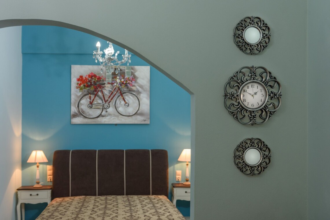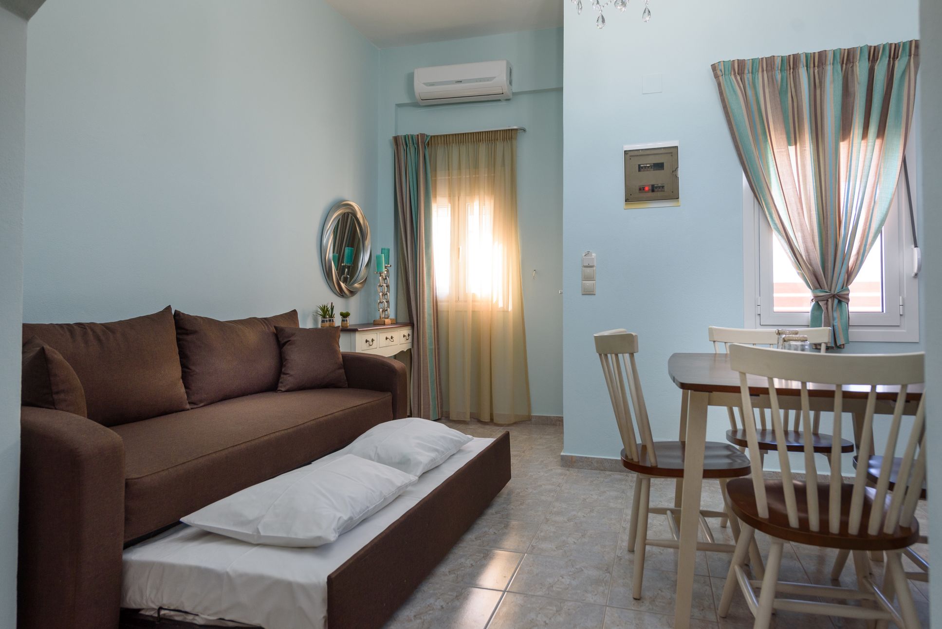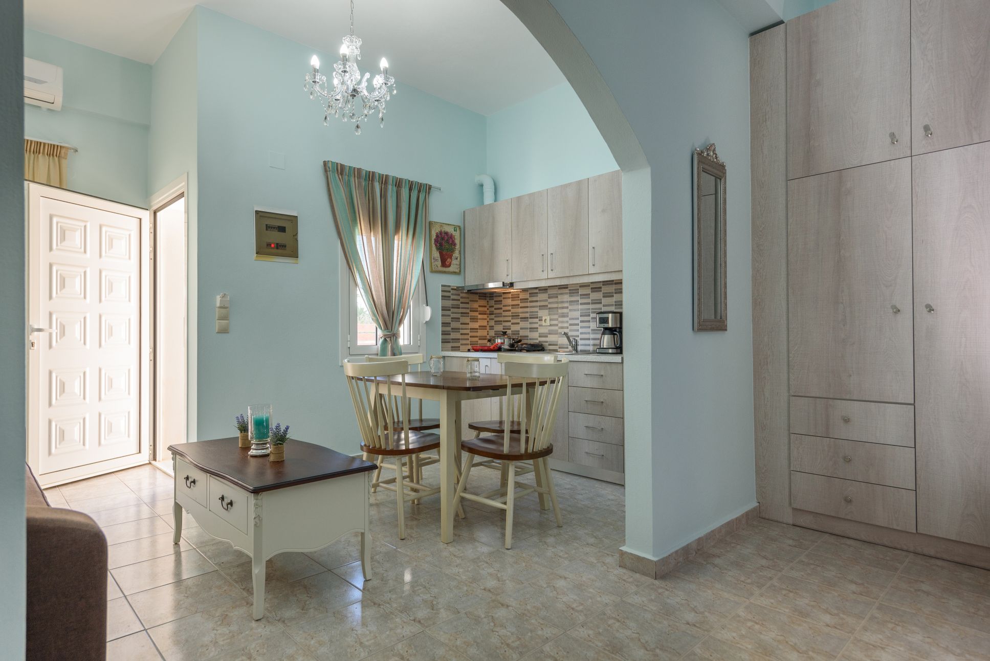 They are all beautifully decorated with handmade furniture, crafted in the Cretan traditional style mixed with modern elements. All apartments come with a fully equipped kitchen with microwave, refrigerator, coffee maker as well as necessary kitchen utensils. Each one has his own private bathroom with shower, hair dryer, towels and washing machine. There is Wi-Fi coverage in each apartment. The individually controlled air conditioning and the smart TV are in the living area.