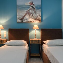 Each unit has a functional, direct and practical design that comfortable accommodates up to 4 persons. Two of our apartments have a double bed and a couch, the third apartment is furnished with two single beds and a couch. Also our family studios have a double bed and a couch.