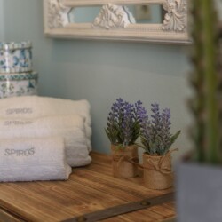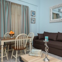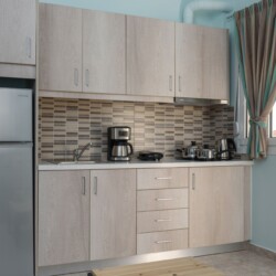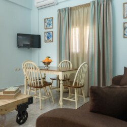They are all beautifully decorated with handmade furniture, crafted in the Cretan traditional style mixed with modern elements. All apartments come with a fully equipped kitchen with microwave, refrigerator, coffee maker as well as necessary kitchen utensils. Each one has his own private bathroom with shower, hair dryer, towels and washing machine. There is Wi-Fi coverage in each apartment. The individually controlled air conditioning and the smart TV are in the living area.