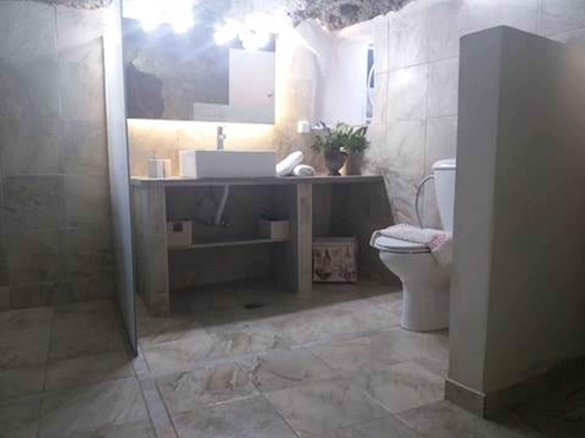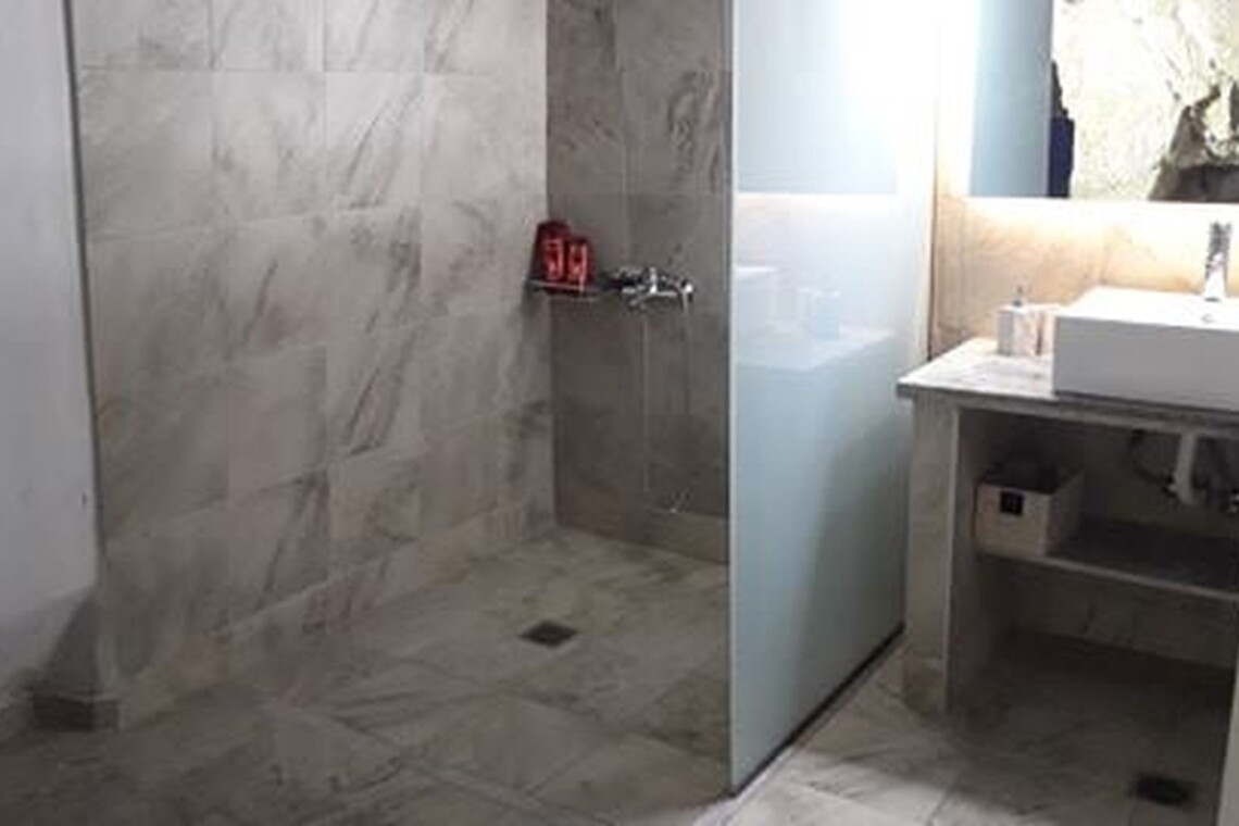 - Modern cave-style bathroom