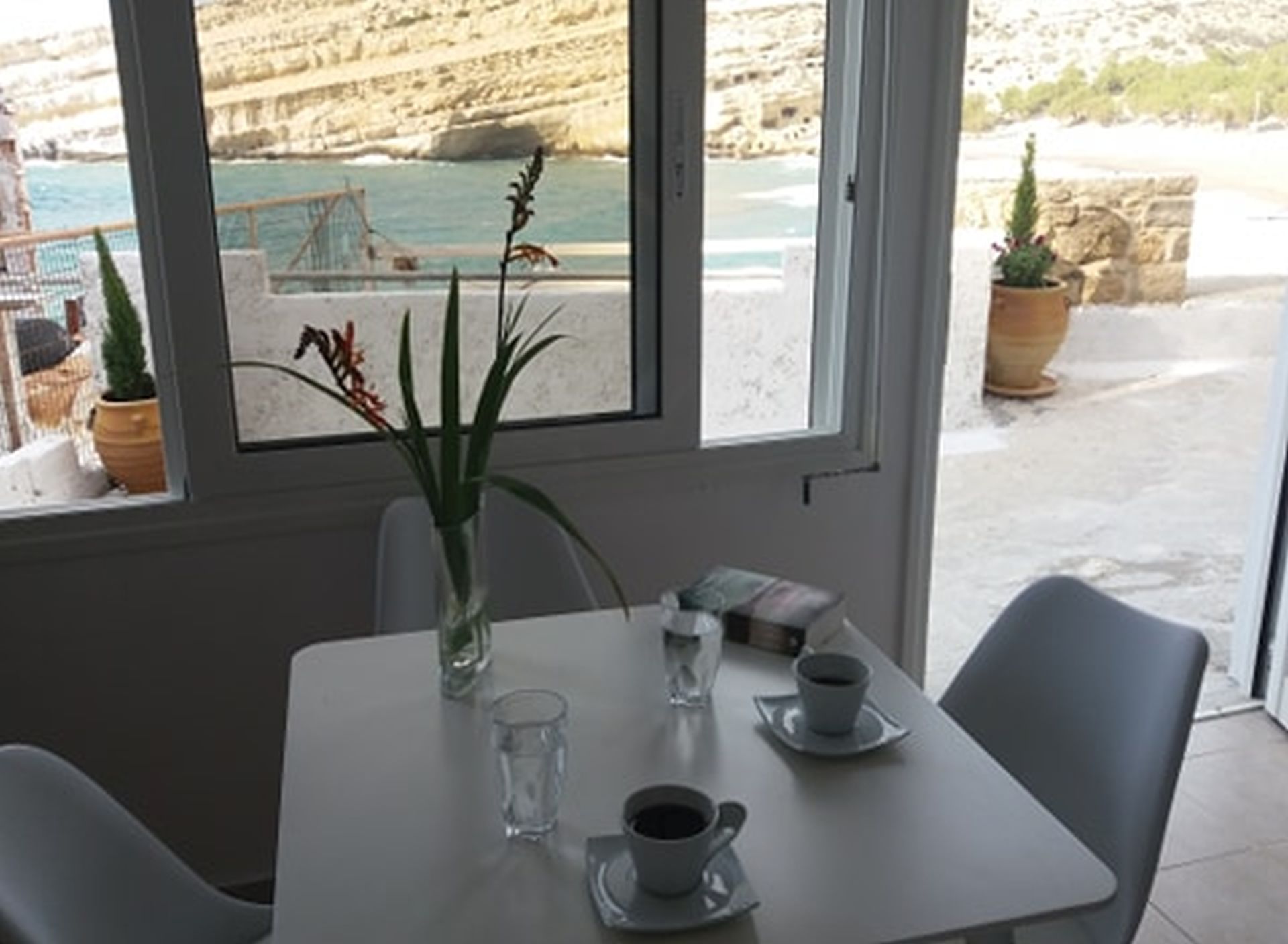 Wake up to stunning sea views and enjoy your coffee while gazing at the natural beauty of Matala. The famous Matala Beach is just a few minutes’ walk away, along with cozy tavernas, shops, and the iconic caves that make this area so special.