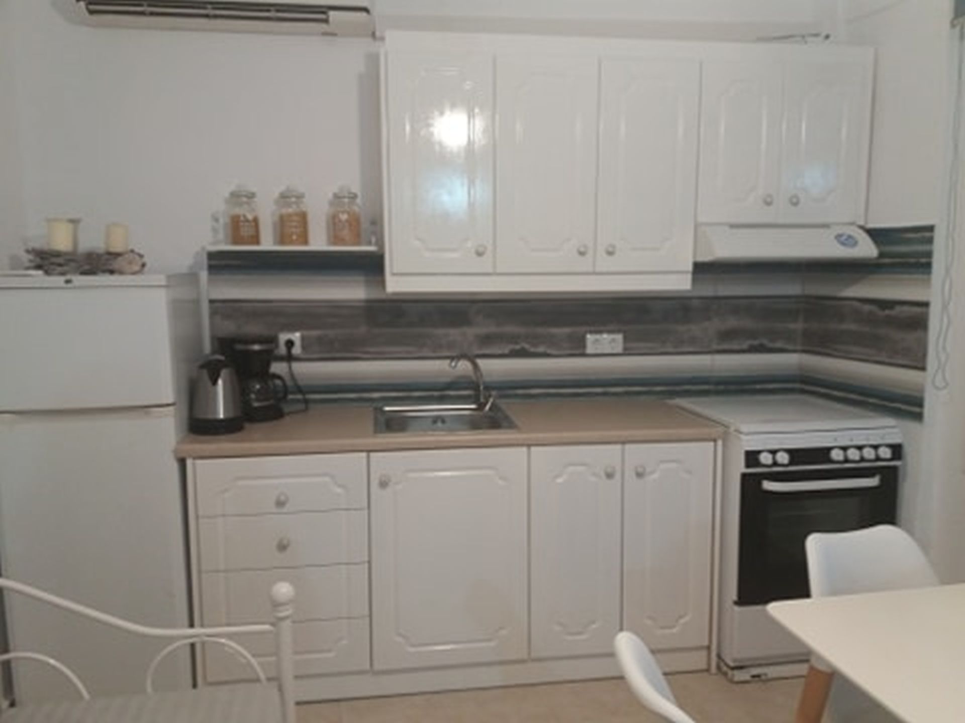 - As you enter, the fully equipped kitchen is on the right, where you can cook while enjoying the beautiful sea view.