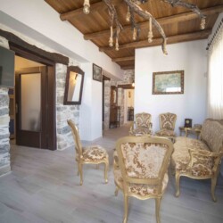 In a traditional village in South Crete, this charming stone house seamlessly blends authentic Cretan architecture with modern comforts. As you step inside, you are greeted by a welcoming seating area, adorned with stylish Cretan-Greek furnishings that exude warmth and hospitality.
