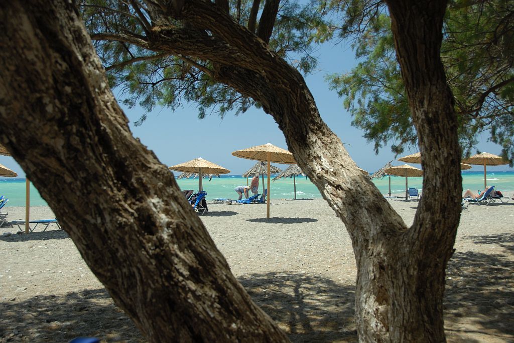 The east part unfolds till Kommos and is called Kataliki. On the beach road are several cafes, taverns and restaurants. This part of the beach is organized with umbrellas and sunbeds. Mostly free of charge for the customers of the shops. Close to the rocks you have a safe and smooth enter into the sea. Recommendable for children!